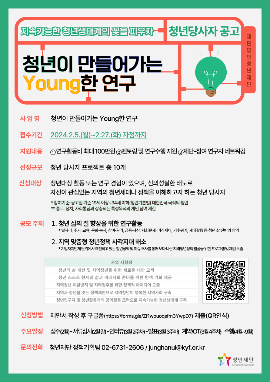 『2024년 청년이 만들어가는 Young한 연구』 청년당사자 모집 공고