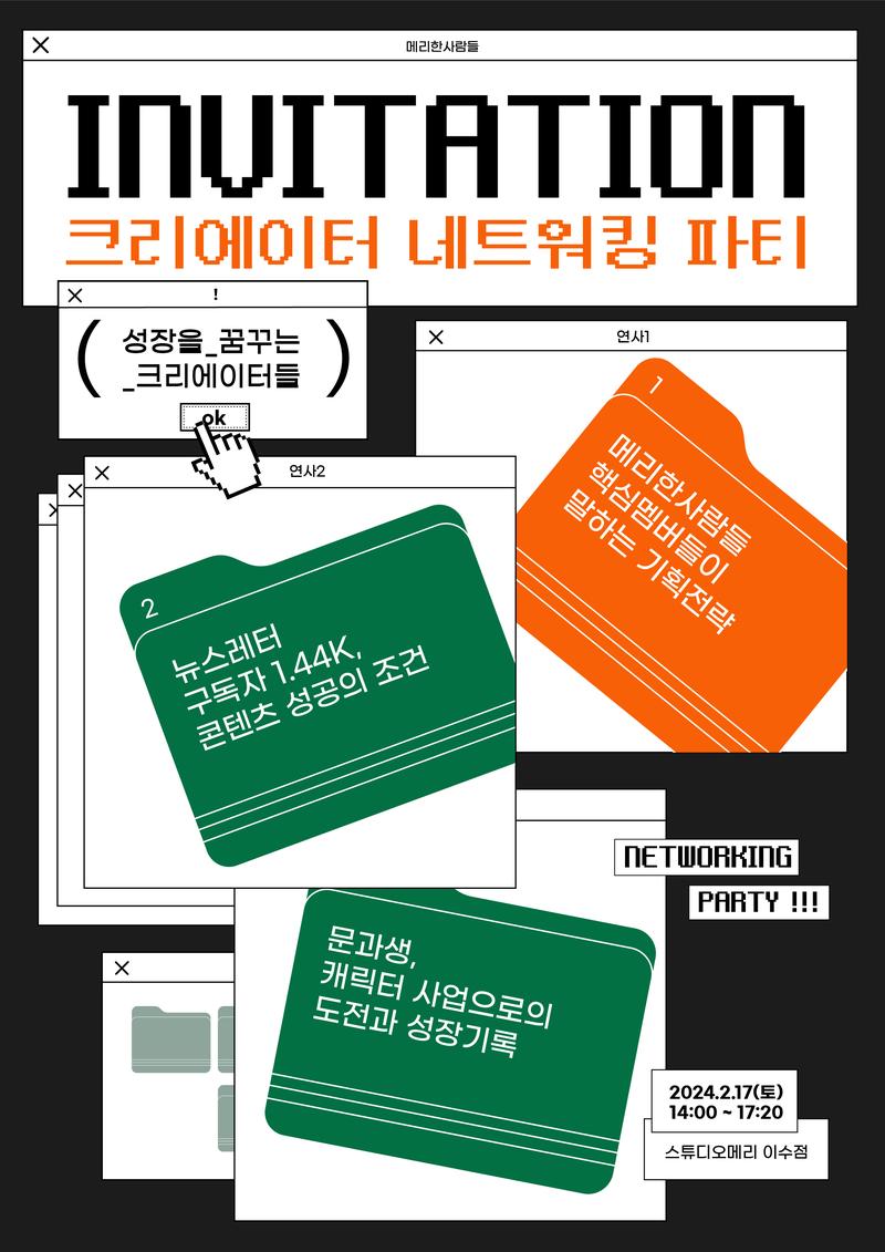 창단 1년만에 100인 규모 오프라인 행사를 시즌 별로 개최한 (주)메리한사람들에서 <크리에이터 네트워킹 파티>를 준비했습니다.