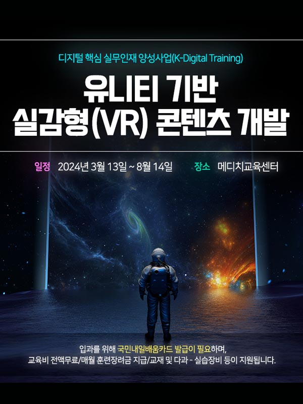 [K-디지털 트레이닝] 유니티 기반 실감형(VR) 콘텐츠 개발 과정 3월 13일 개강!