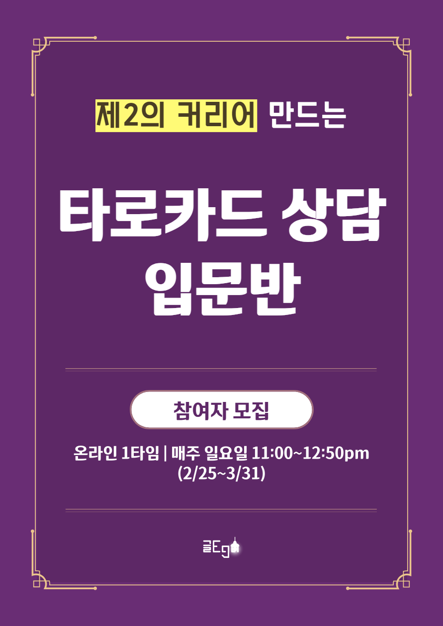 타로카드에 대해서 잘 알지 못하고, 상담 경험이 전무하더라도 괜찮습니다. 그동안 제가 직접 상담을 진행하며 얻은 노하우를 모두 알려드릴게요. 타로카드 상담사로서의 커리어, 저와 함께 시작해봅시다!”