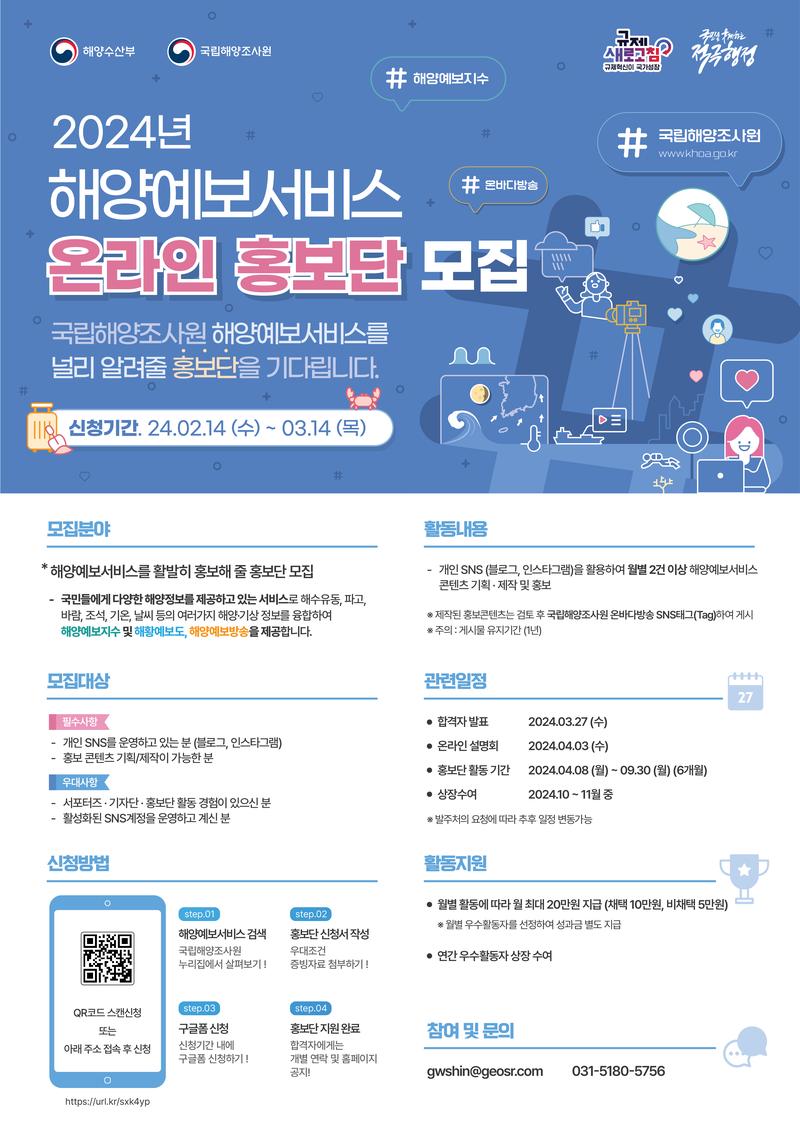 국립해양조사원 2024년 해양예보서비스 온라인 홍보단 모집