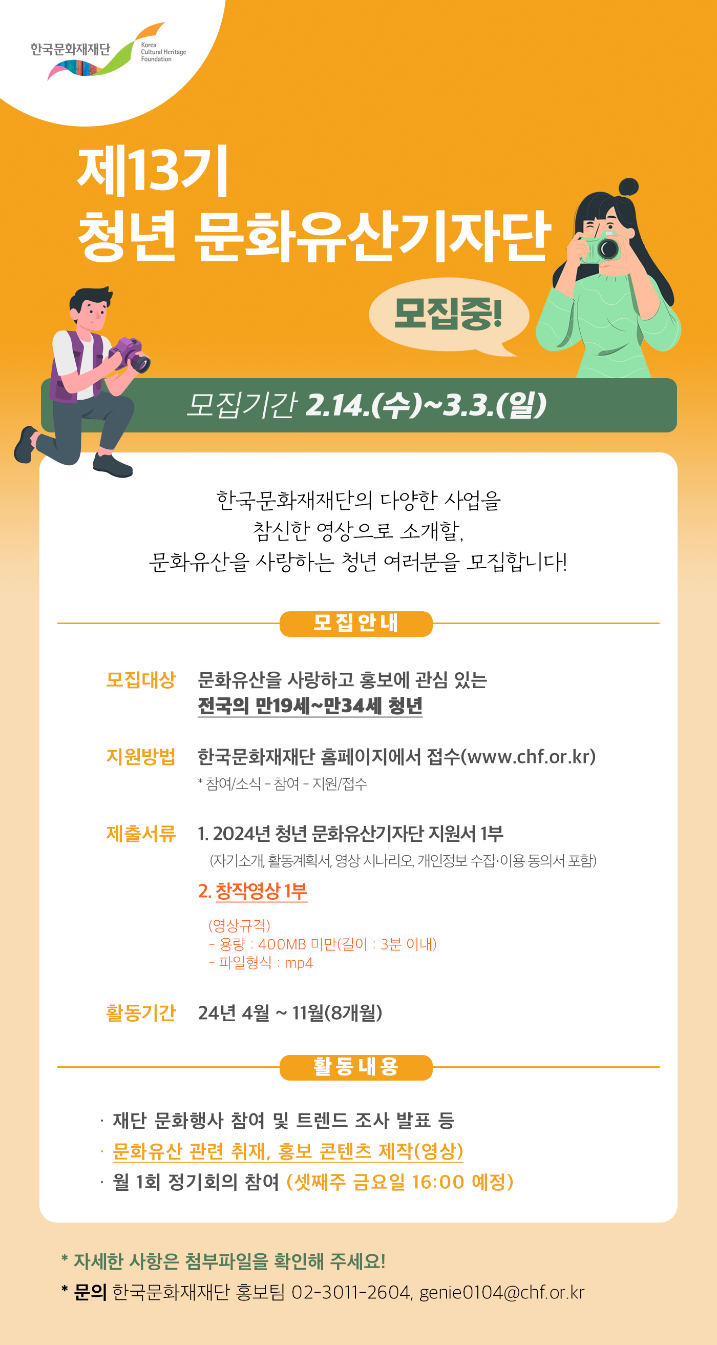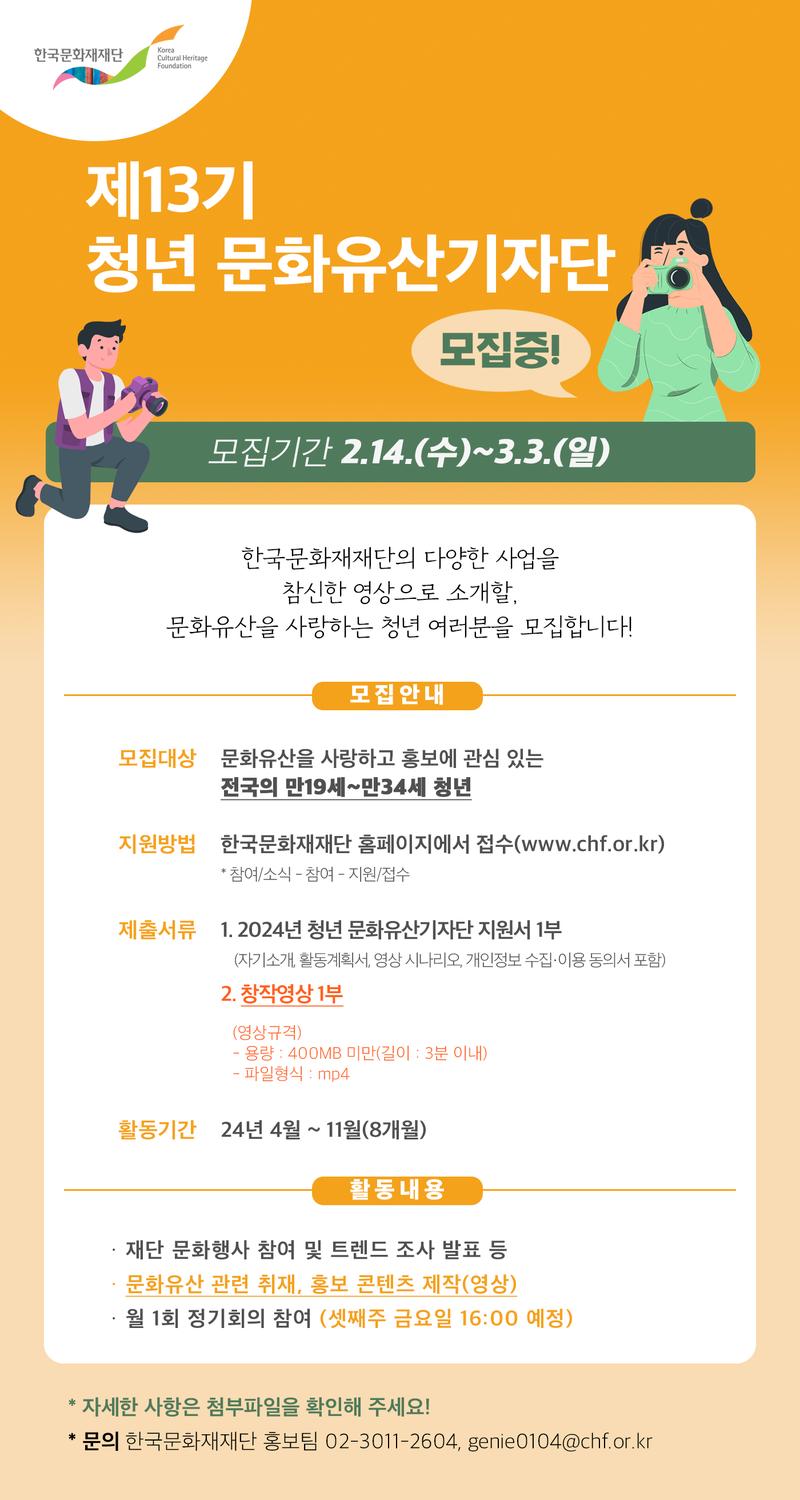 [문의] 한국문화재재단 홍보팀 (Tel. 02-3011-2604 / E-mail. genie0104@chf.or.kr)