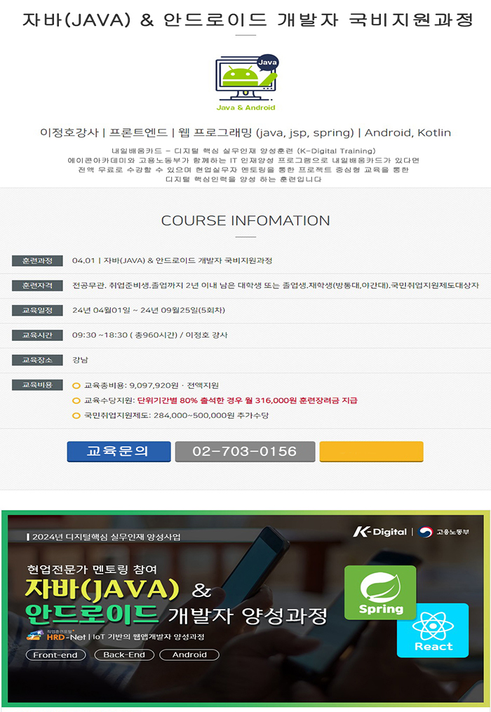 훈련과정 : [K-Digital] 자바(JAVA) & 안드로이드 개발자 국비지원 취업과정