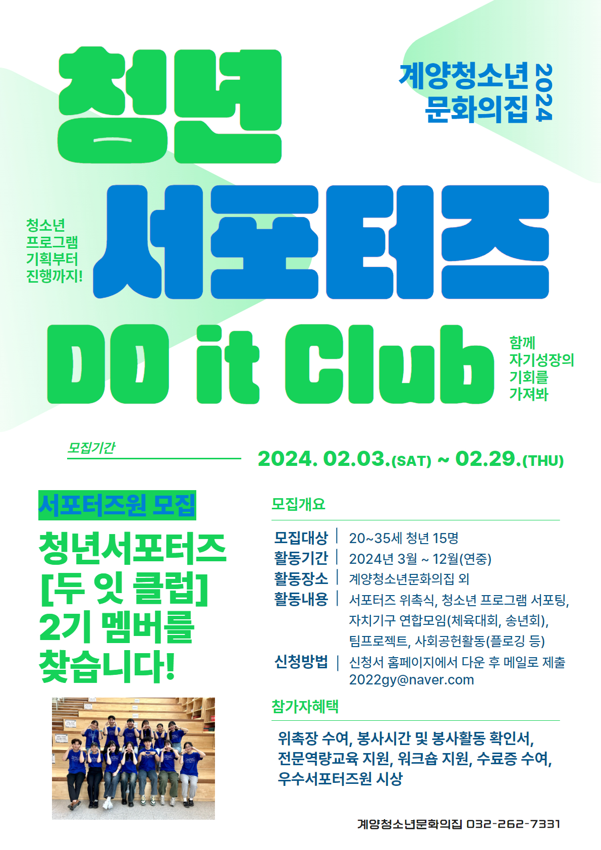 인천광역시시설관리공단 계양청소년문화의집 / 2024 청년서포터즈 "두 잇 클럽" 2기 모집
