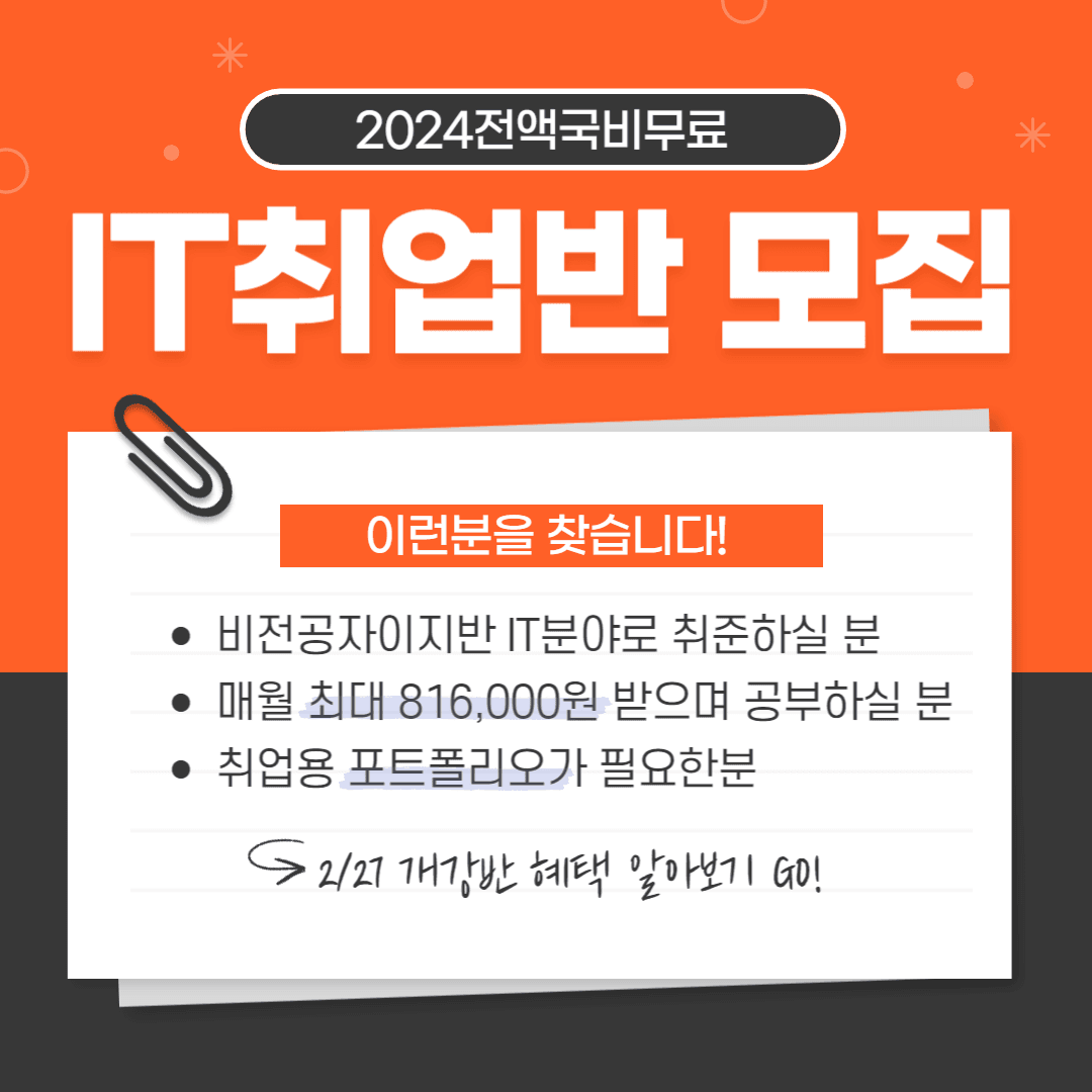 📣2024년도 전액국비무료 IT취업반 大모집!!