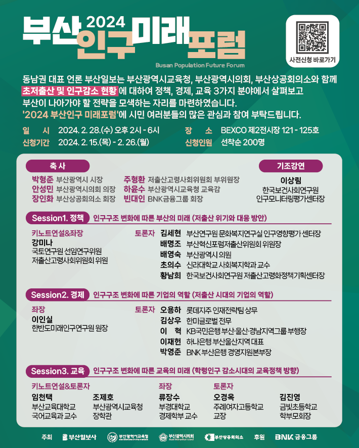 부산의 인구 미래 방안에 대해 토의하는 '2024 부산인구 미래포럼'이 개최됩니다.