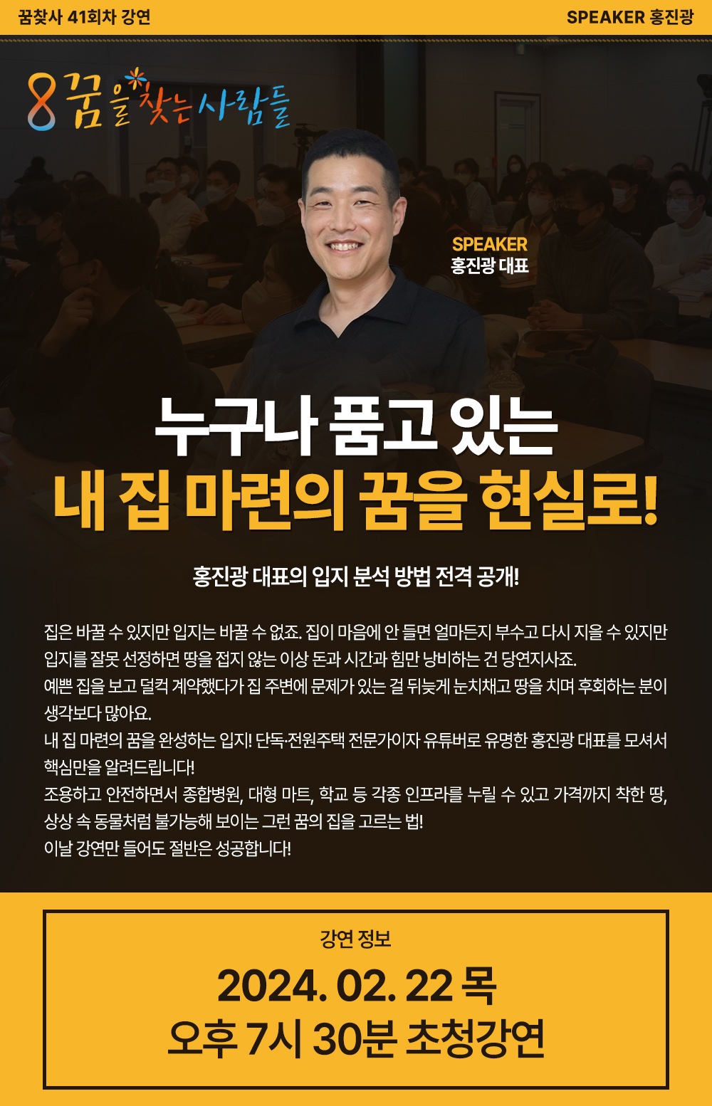 강연은 2월 22일 목요일 오후 7시 30분 꿈찾사 강연장에서 시작합니다!