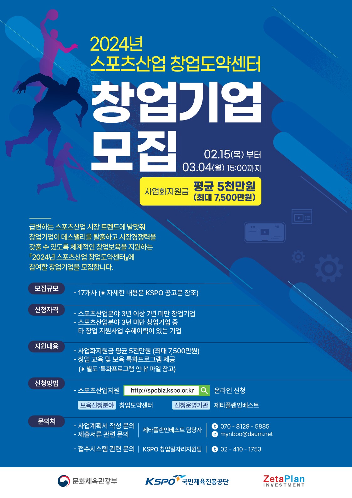□ 지원규모: 창업도약센터 제타플랜인베스트 총 17개사
