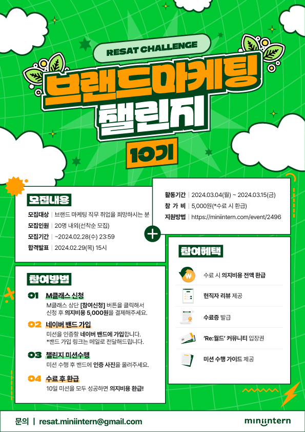 - 활동 내용 : 10일간 직무 미션 수행하고, 결과물을 인증해주세요!
