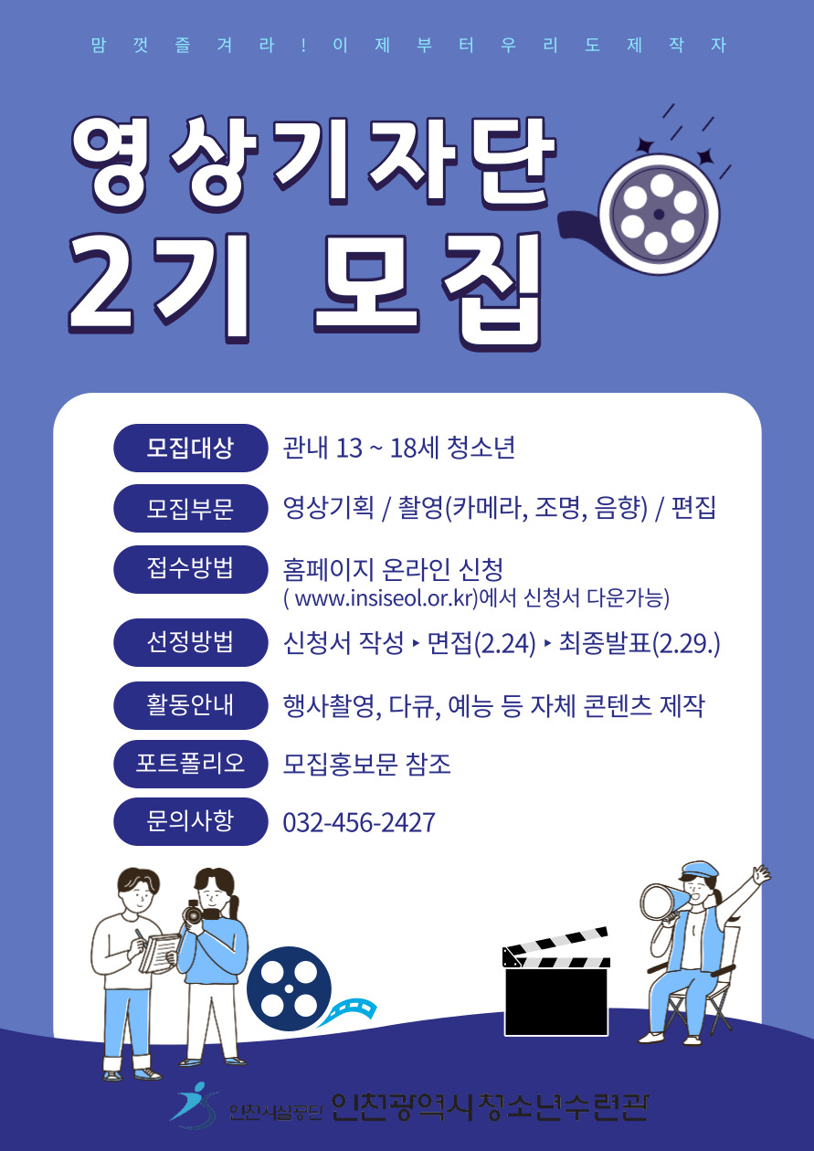 인천광역시청소년수련관에서 영상기자단 2기를 모집합니다.