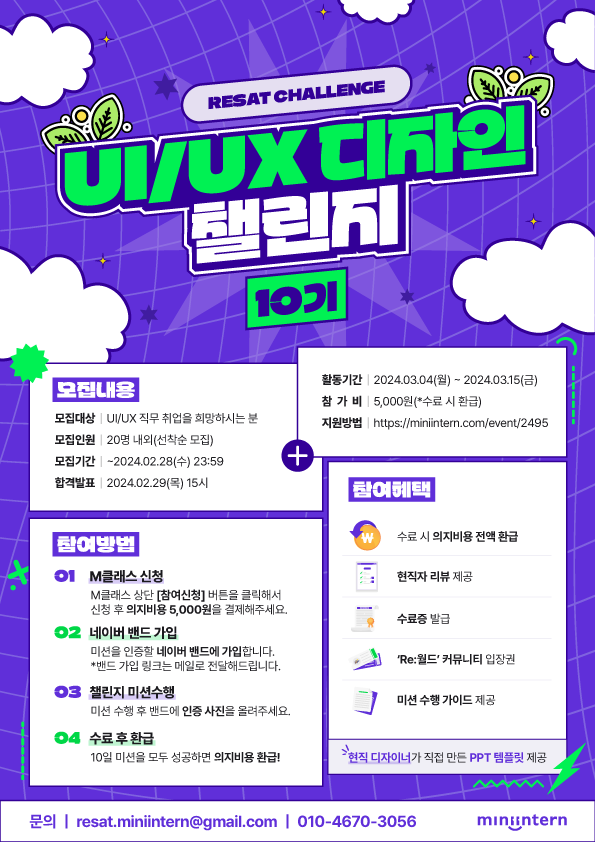 3) 활동 내용 : 10일간 직무 미션 수행하고, 결과물을 인증해주세요!