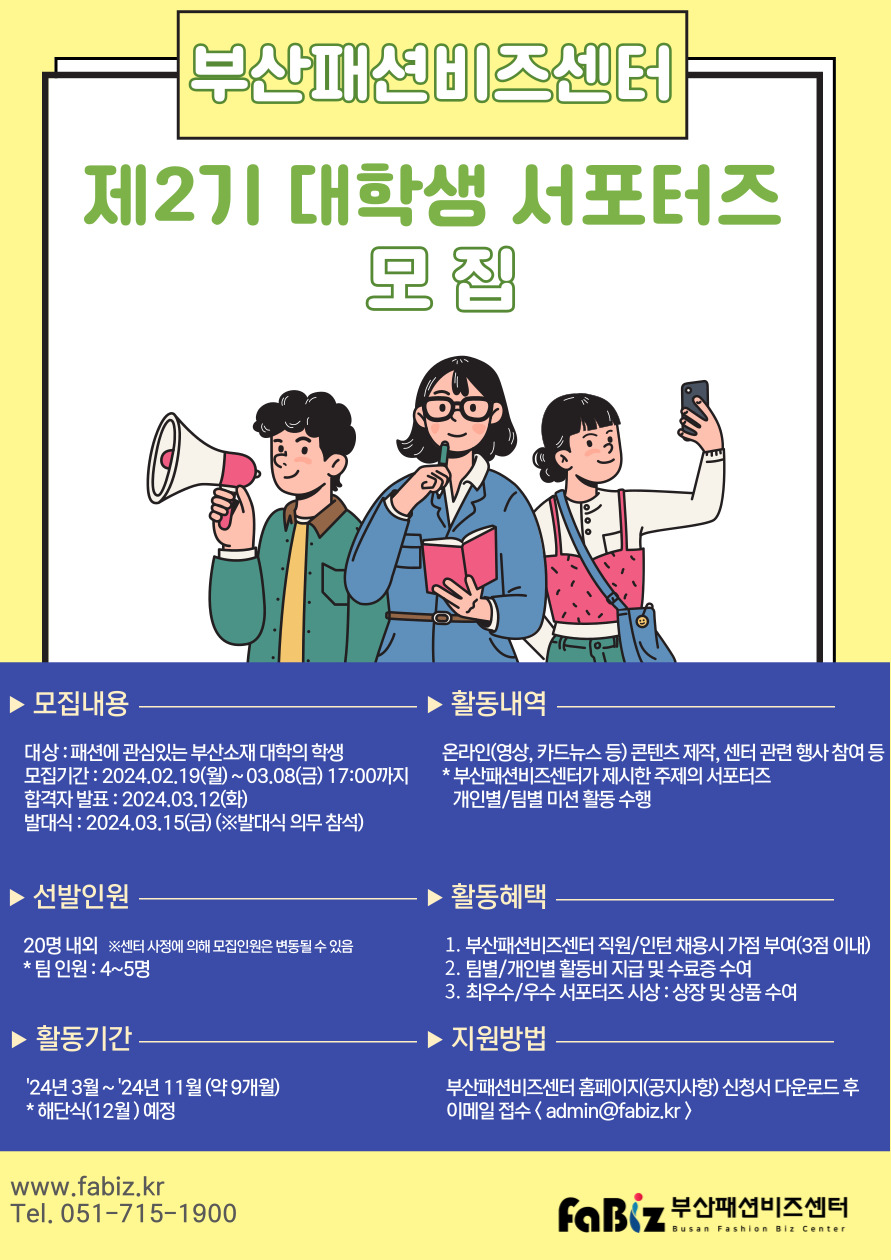 활동혜택 : -부산패션비즈센터 직원/인턴 채용시 가점 부여(3점 이내)