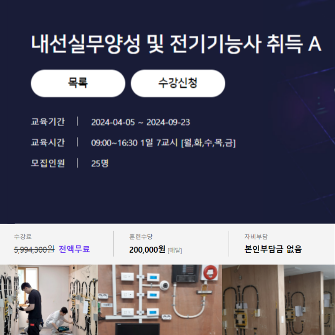 내선공사 전문가 양성과정으로 전기기능사 준비까지