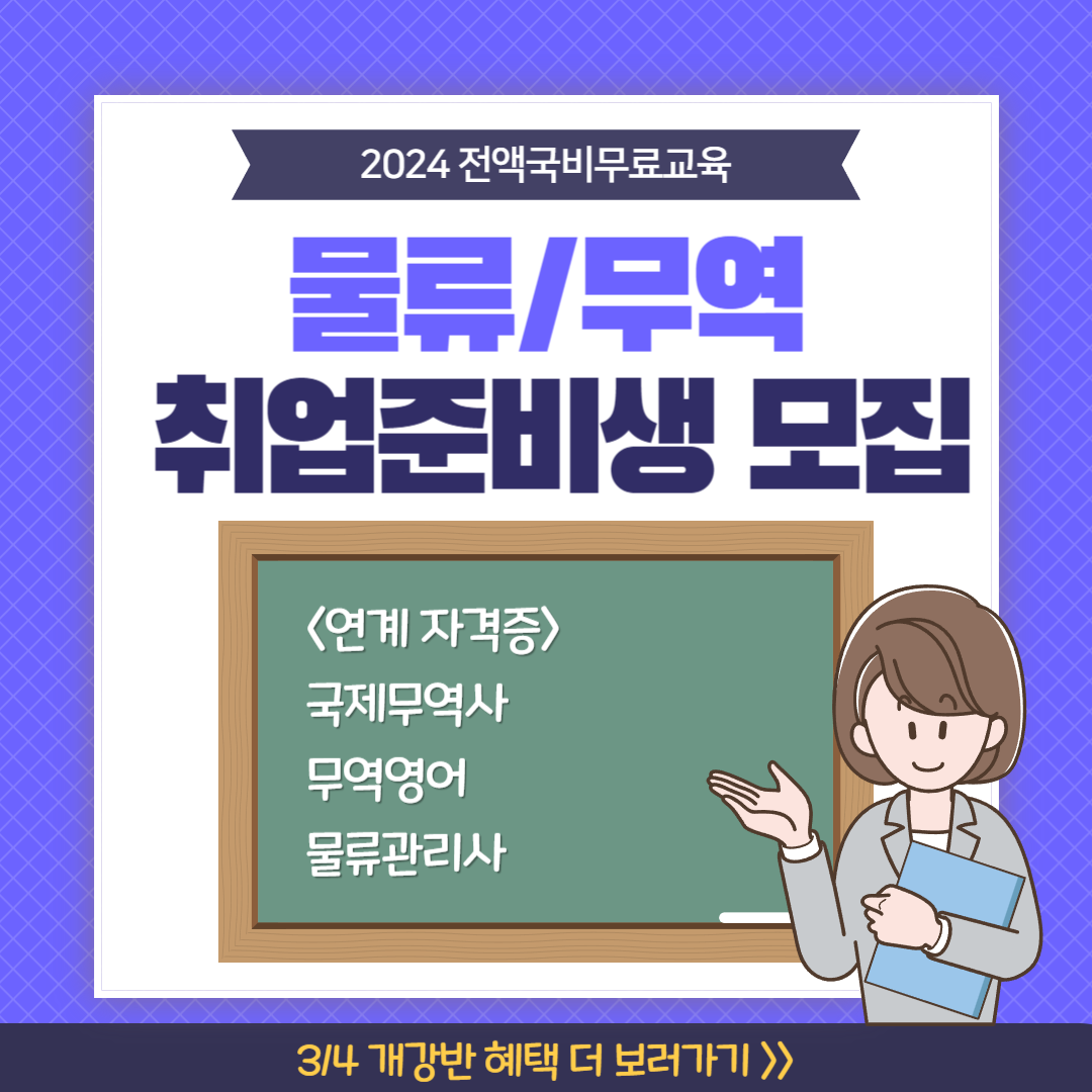 [부산]물류/무역 전액국비 자격증&취업준비생 모집(매월 최대 70만원 제공)