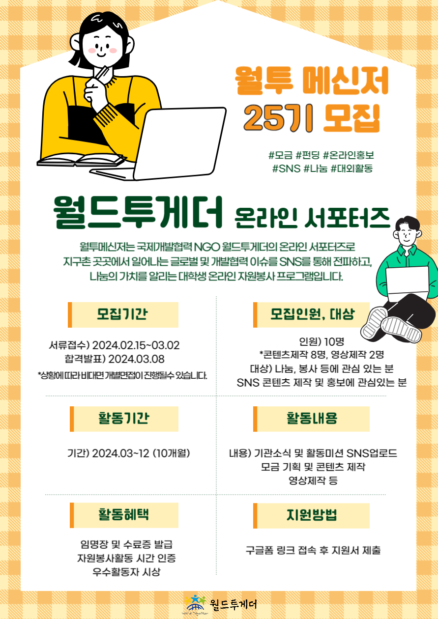 세상에 작은 변화들을 함께 만들어갈 온라인 서포터즈 월투메신저를 모집합니다!