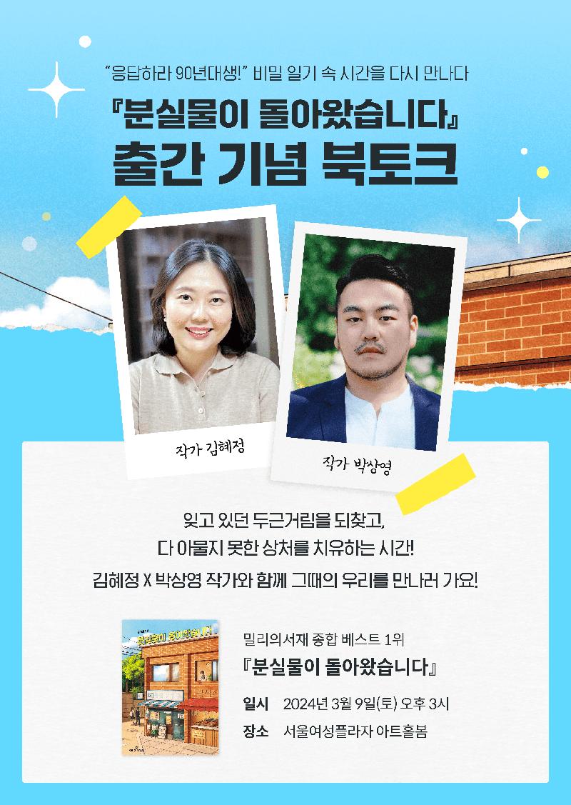 박상영 X 김혜정 작가와 함께하는 <분실물이 돌아왔습니다> 북토크 초대장💌