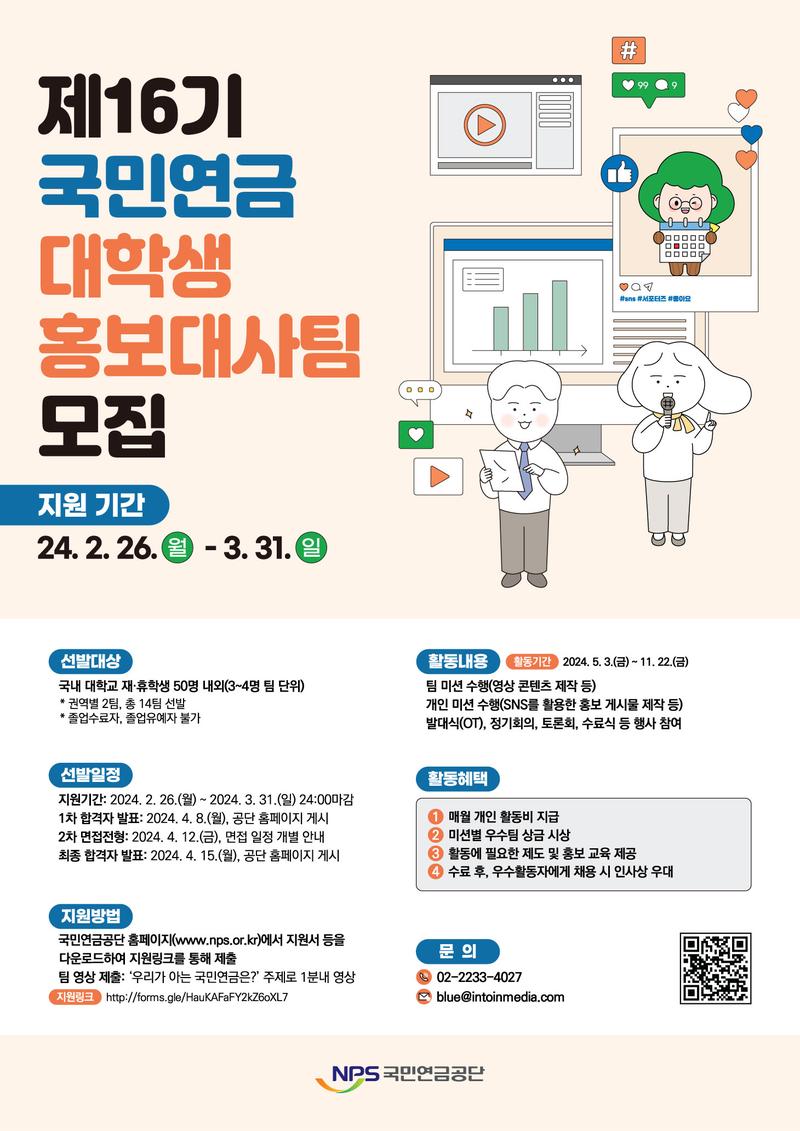 제16기 국민연금 대학생 홍보대사팀 모집