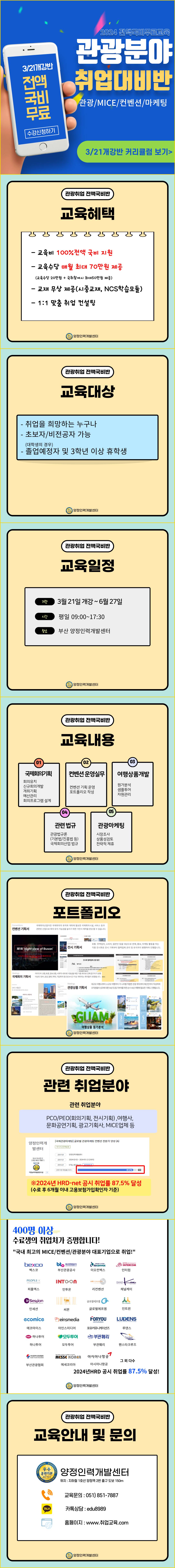 [부산] 전액국비로 관광분야 취업하자!(관광/마케팅/컨벤션 취준생 모집)
