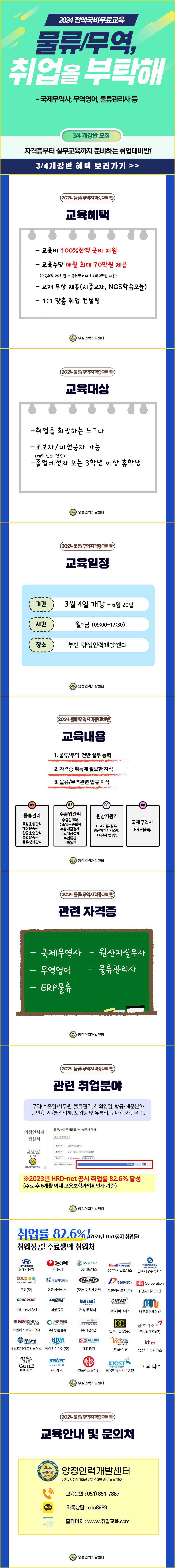 [부산/전액무료] 국제무역사, 무역영어, 물류관리사 등 물류/무역 취준생 모집