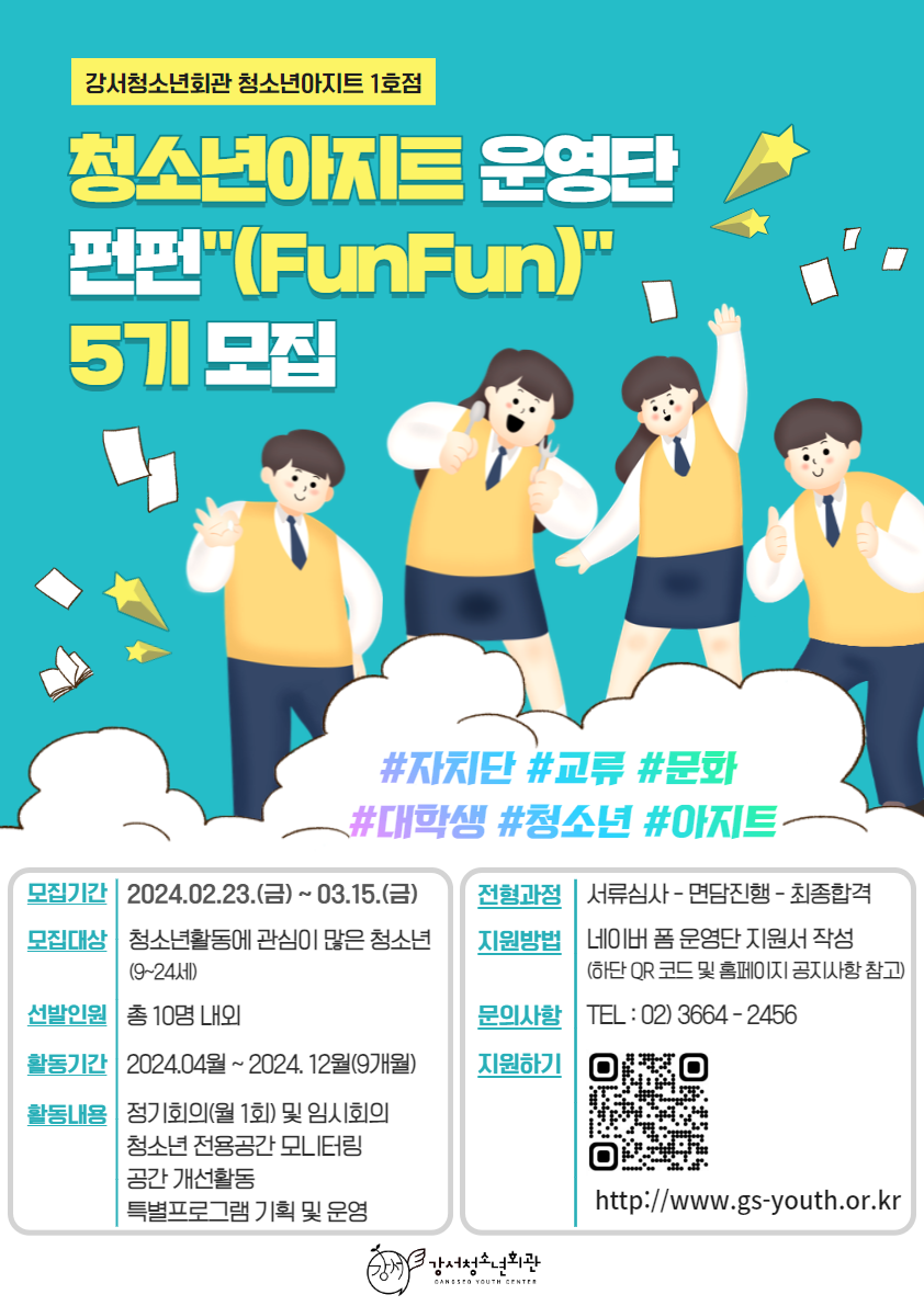 강서청소년회관 청소년아지트 운영단 "펀펀(FunFun)" 단원을 모집합니다.