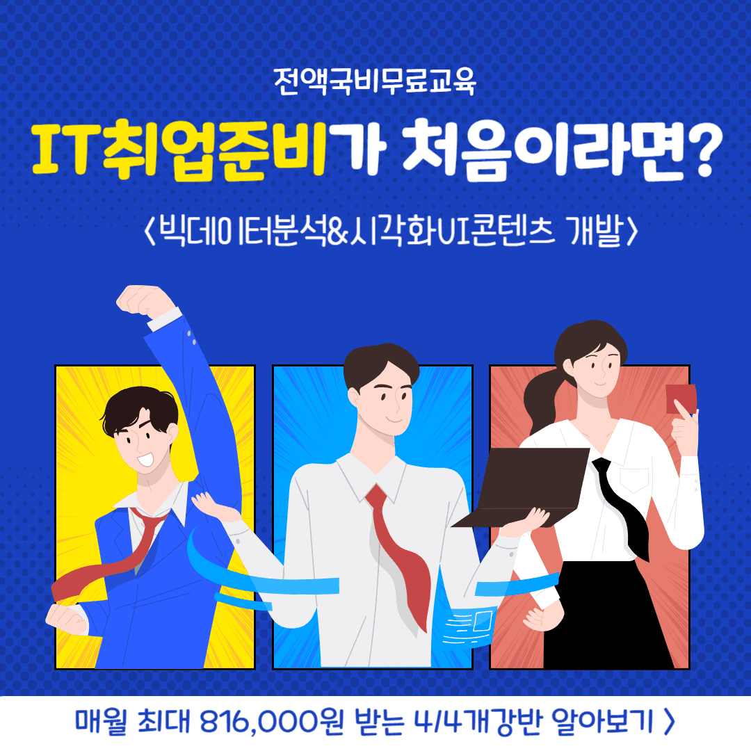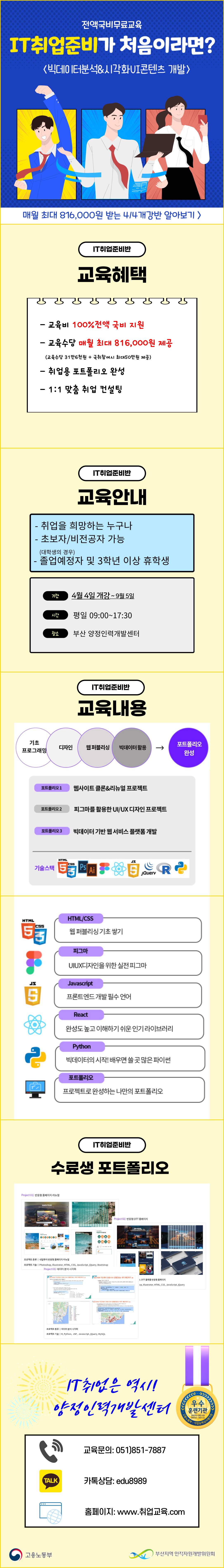 [부산] 매월 최대 816,000원 받는 전액국비무료 IT 교육생 모집(빅데이터, 프론트엔드개발자)