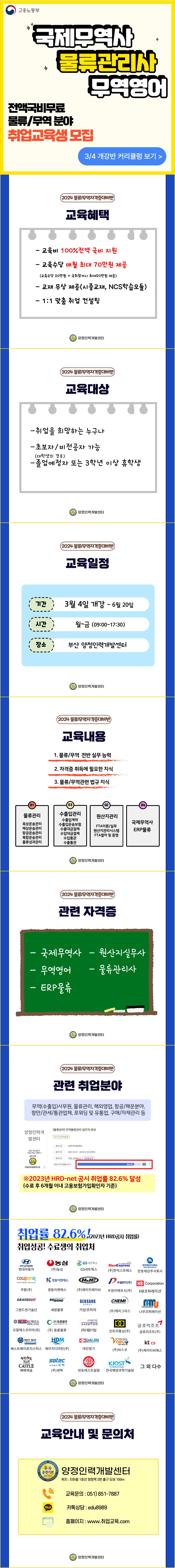 [부산] 전액국비지원으로 물류/무역 자격증부터 취업준비까지! 실무교육생 모집