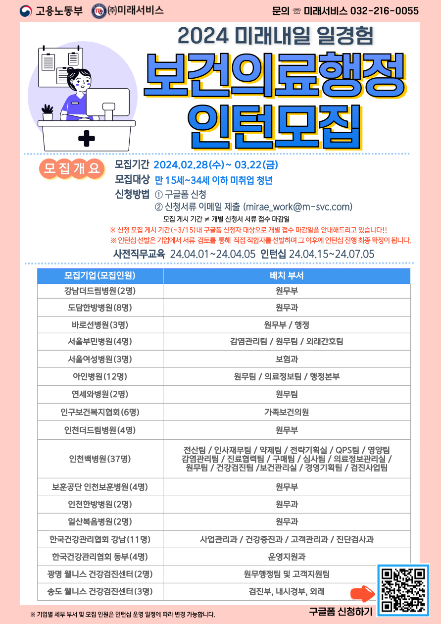 ⭐ 2024 미래내일일경험 보건의료행정 1차 인턴 모집 ⭐