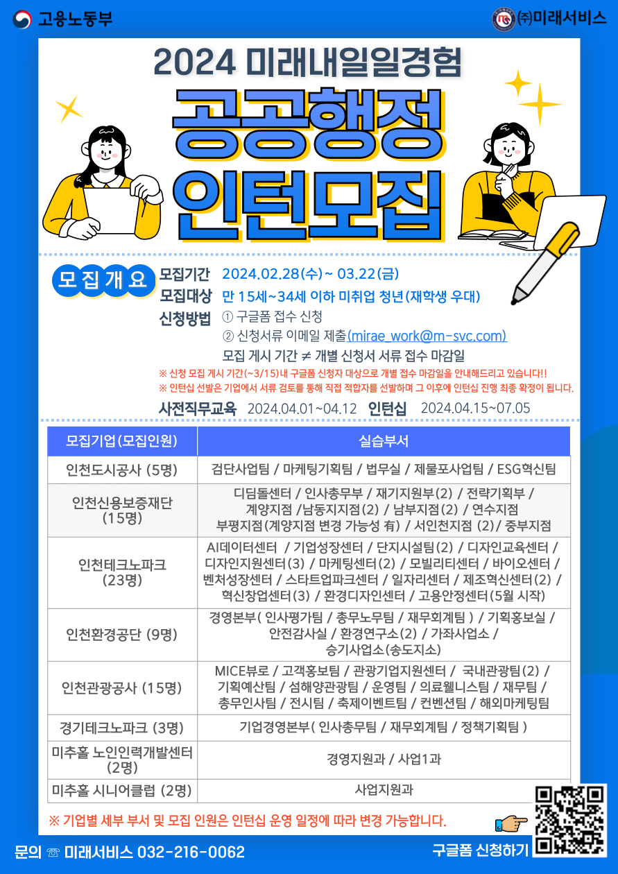 ⭐ 2024 미래내일일경험 공공행정 1차 인턴십 참여자 모집 ⭐