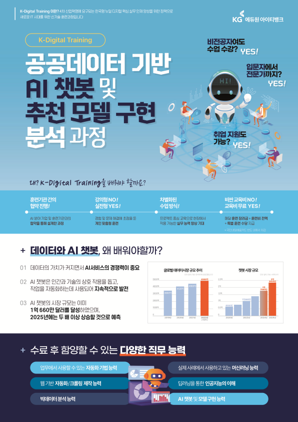 [채용연계형] 공공데이터 기반 AI 챗봇 및 추천 모델 구현 분석 과정 훈련생 모집 中