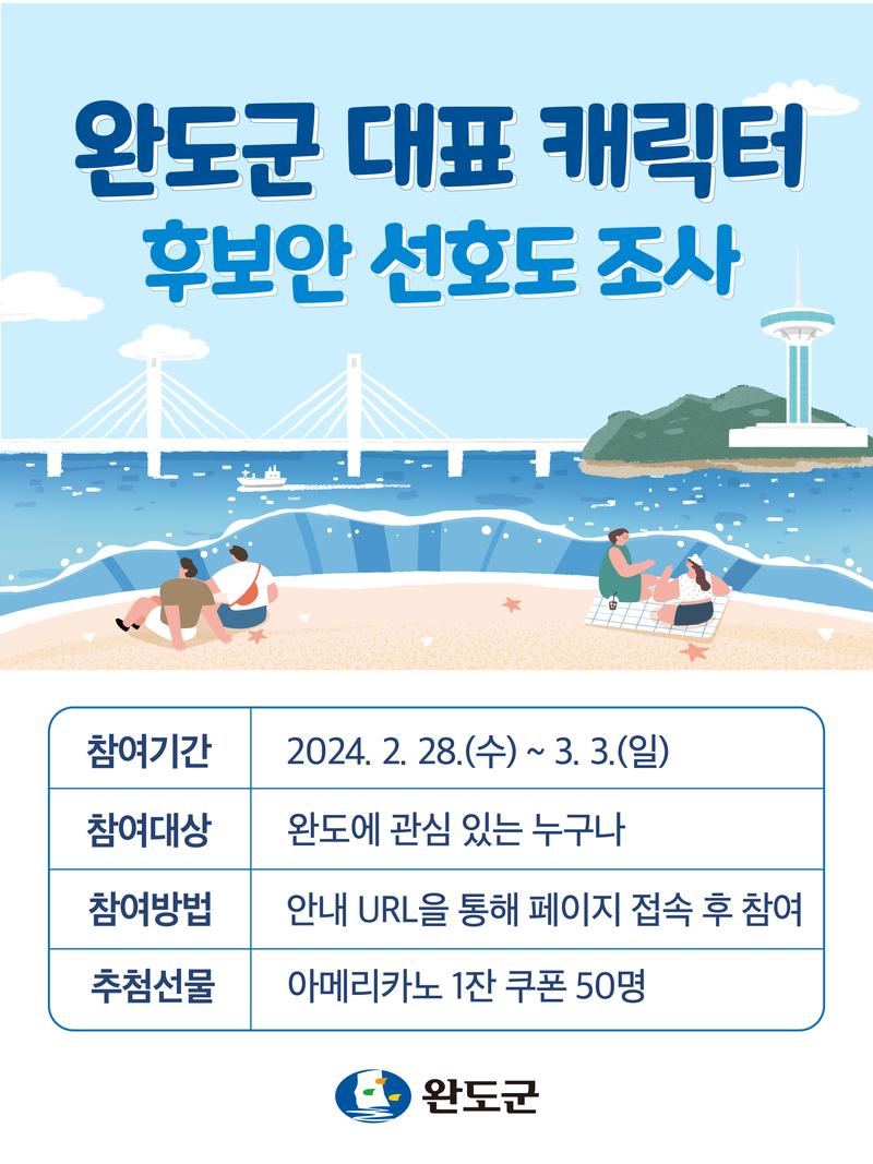 해양치유 중심도시의 가치를 담은 완도군의 새로운 대표 캐릭터 디자인을 선택해주세요.
