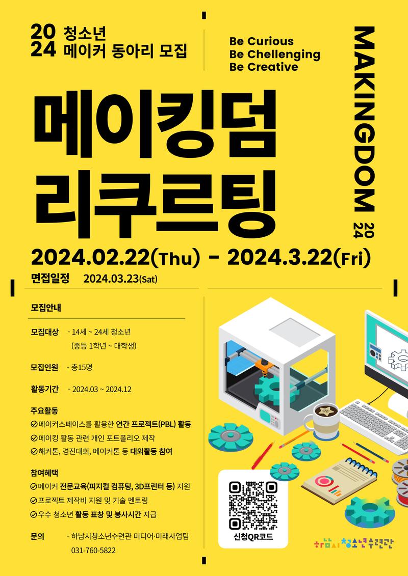 2024년도 하남시청소년수련관 청소년 메이커 동아리 '메이킹덤'을 모집합니다!!!