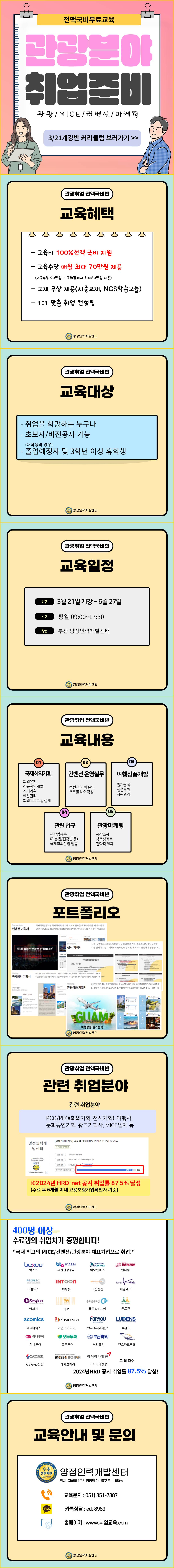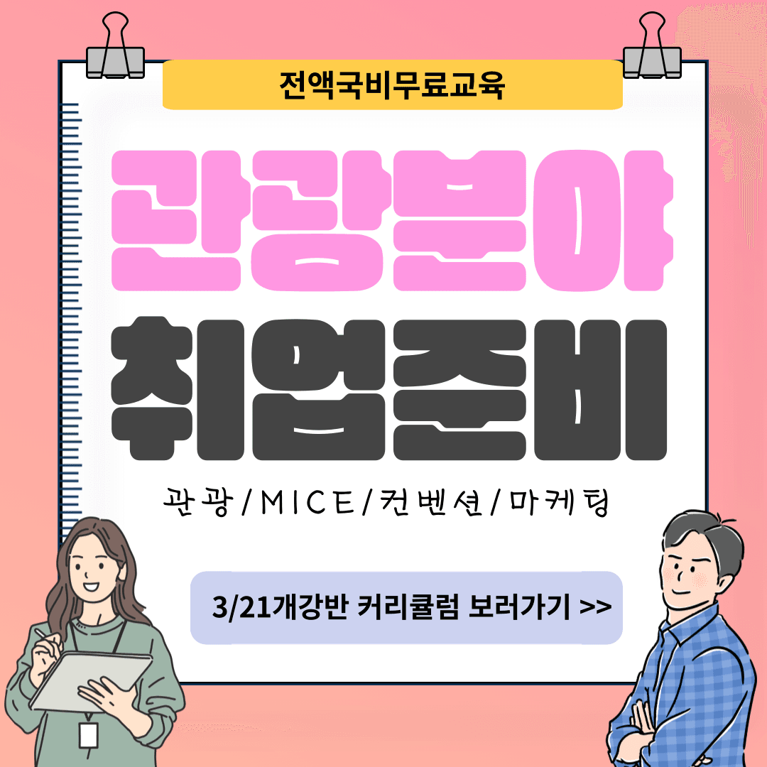 ✔️관광마케팅/국제회의·컨벤션/여행상품개발 등 실무 위주의 교육 제공!