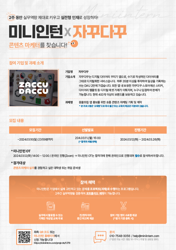 - 미니인턴 신청: https://bit.ly/49zU3kY