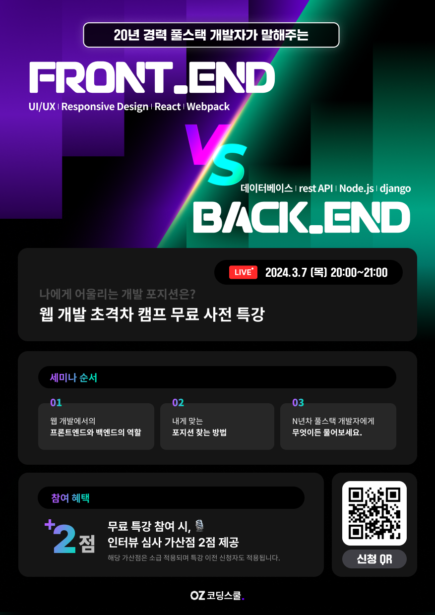 무료 특강 듣고 스타트업 웹 개발 초격차 캠프 합격을 위한 가산점까지 받아가세요!