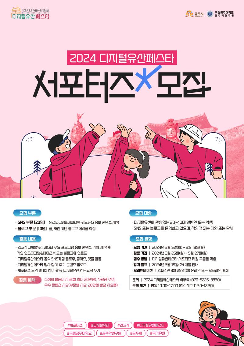 ✨ 디지털유산에 대한 관심을 가지고 2024 디지털유산페스타를함께 이끌어나갈 서포터즈를 모집합니다! ✨