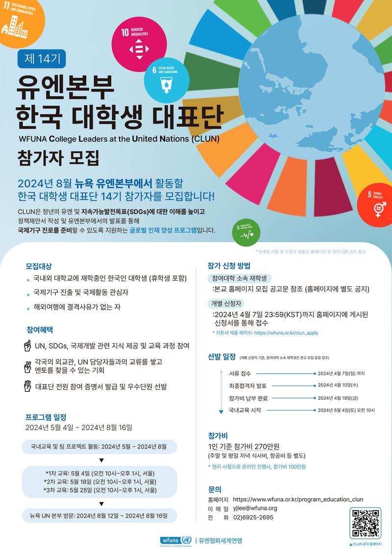 [제14기 유엔본부 한국 대학생 대표단 프로그램 참가자 모집 (~4/7)]