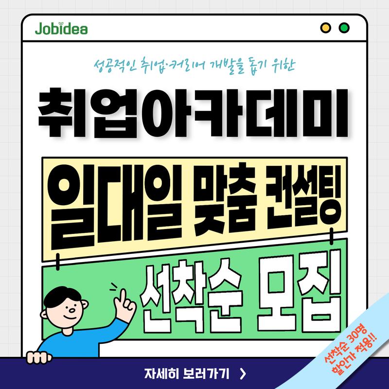 [잡아이디어] 잡아이디어 취업 아카데미 1:1 맞춤형 컨설팅 선착순 할인 이벤트 모집
