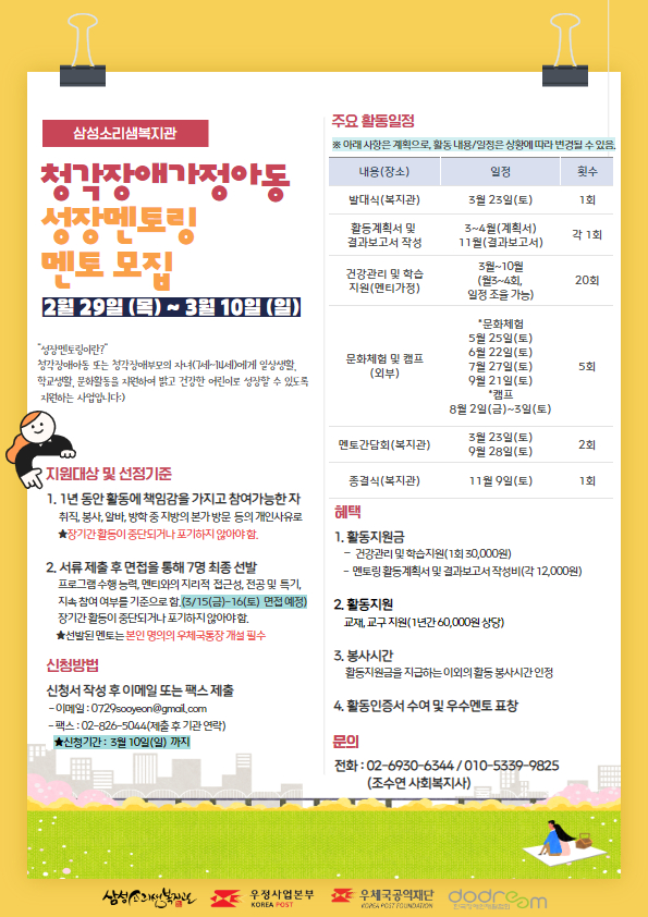 ※ 선발될 경우 멘토는 본인 이름의 우체국 통장 개설
