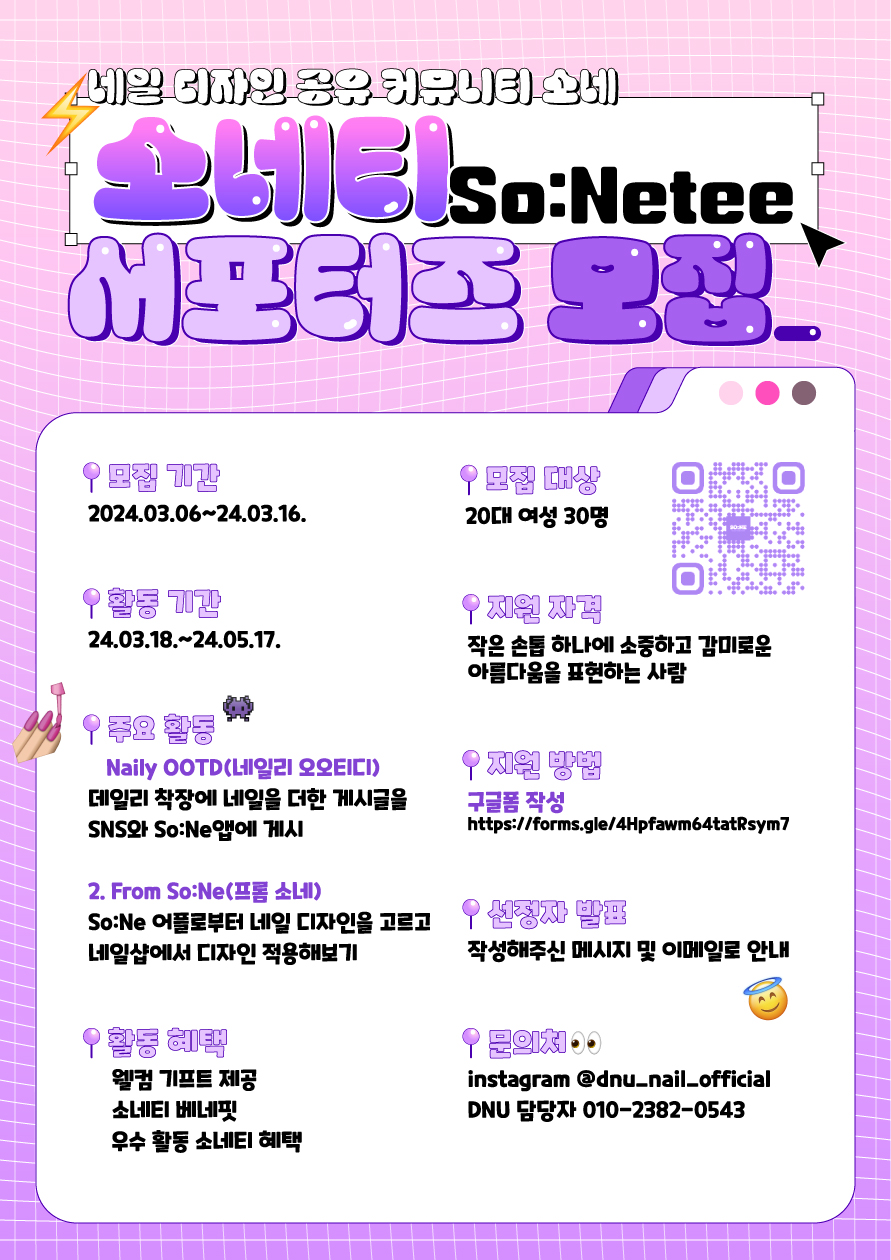 ▶ 입력하신 개인정보는 So:Ne 서포터즈 활동에만 활용됨을 알려드립니다.