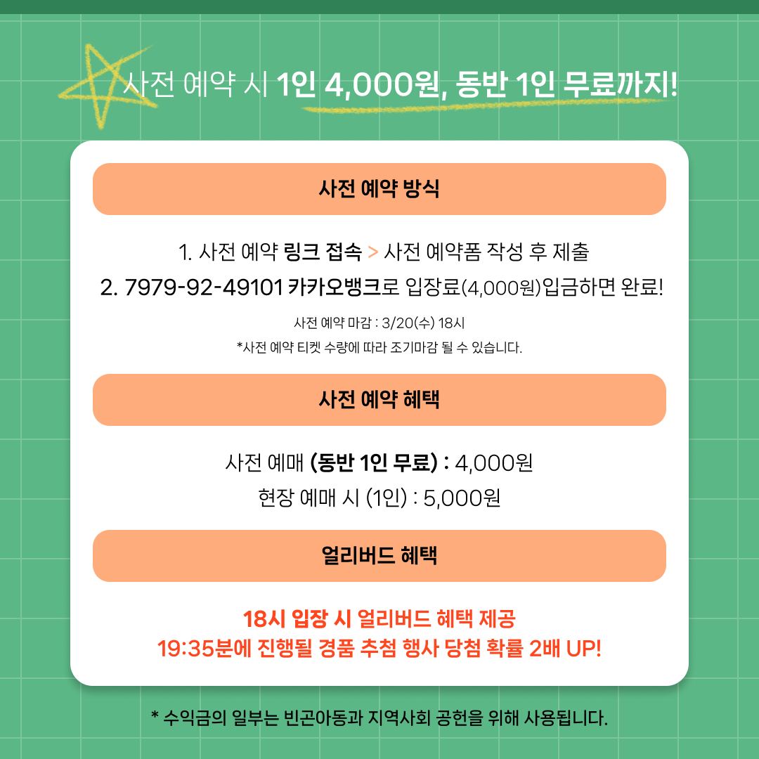 🎟 사전예매 : 4,000원 (동반 1인 무료)