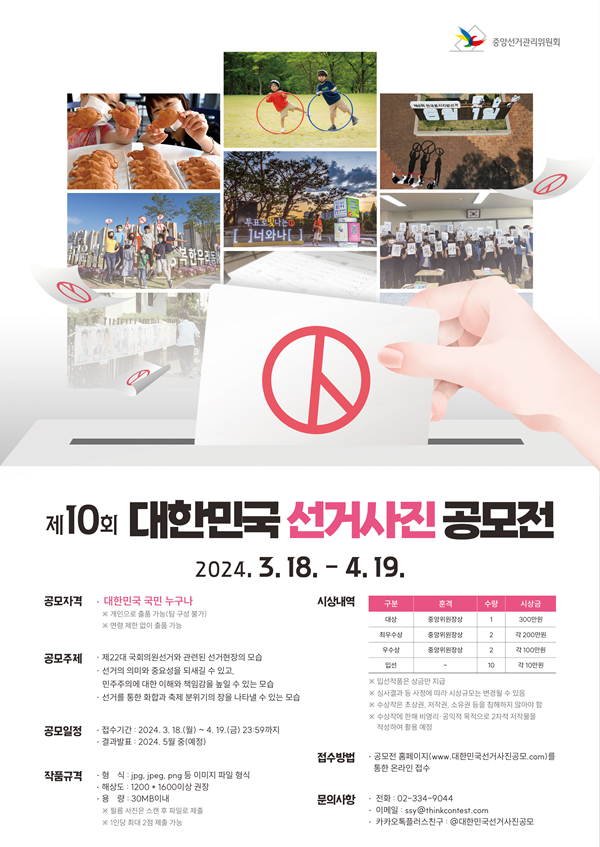 - 중앙선거관리위원회(각급 위원회 포함)는 최종 수상작품에 한해 입상자의 허락을 받아 비영리, 공익적 목적으로 온·오프라인 홍보물(SNS, 리플릿, 포스터 등)로
