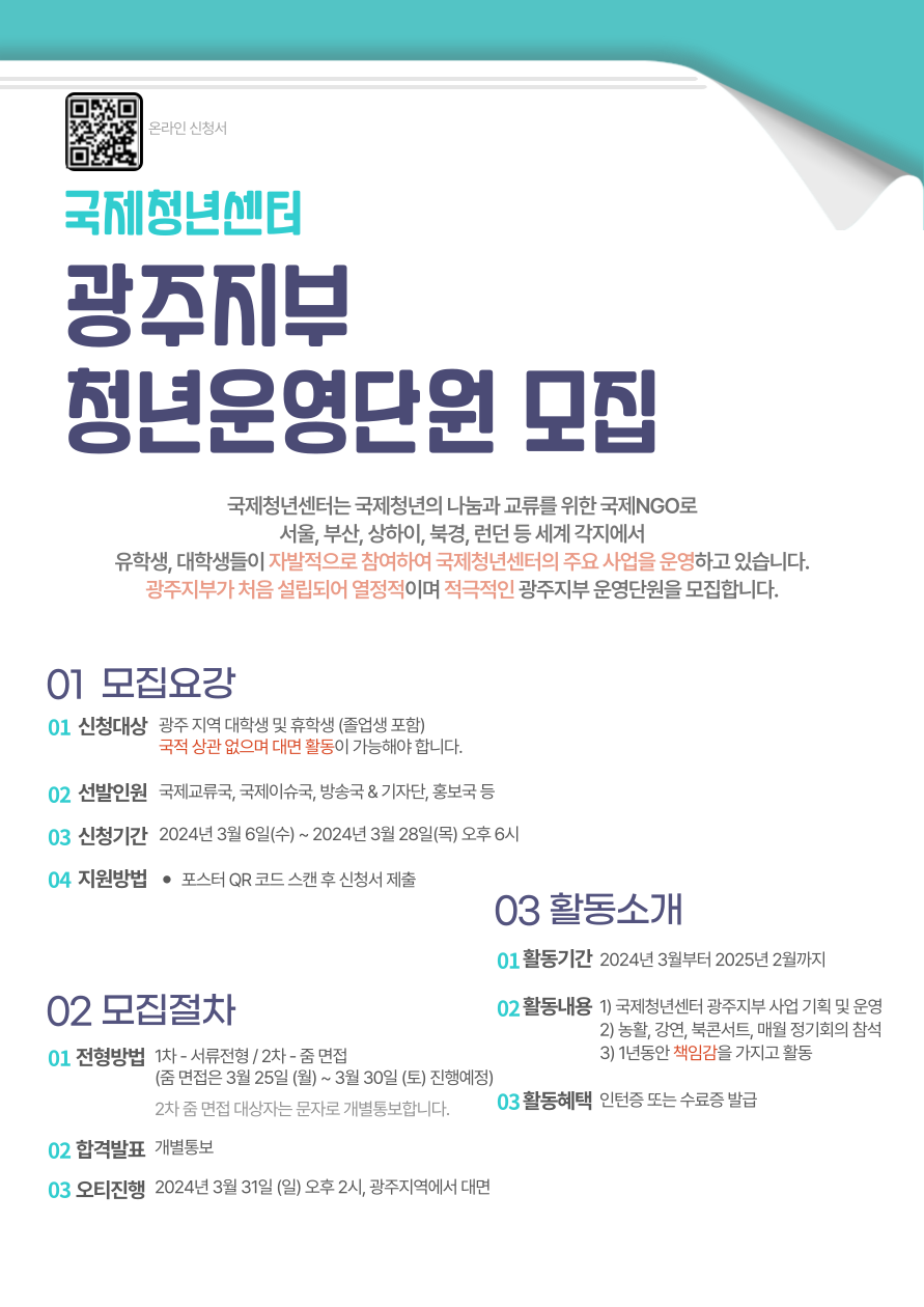 국제청년센터 광주지부와 함께 다름이 존중되는 사회를 만들어 갈 운영단원을 모집합니다.