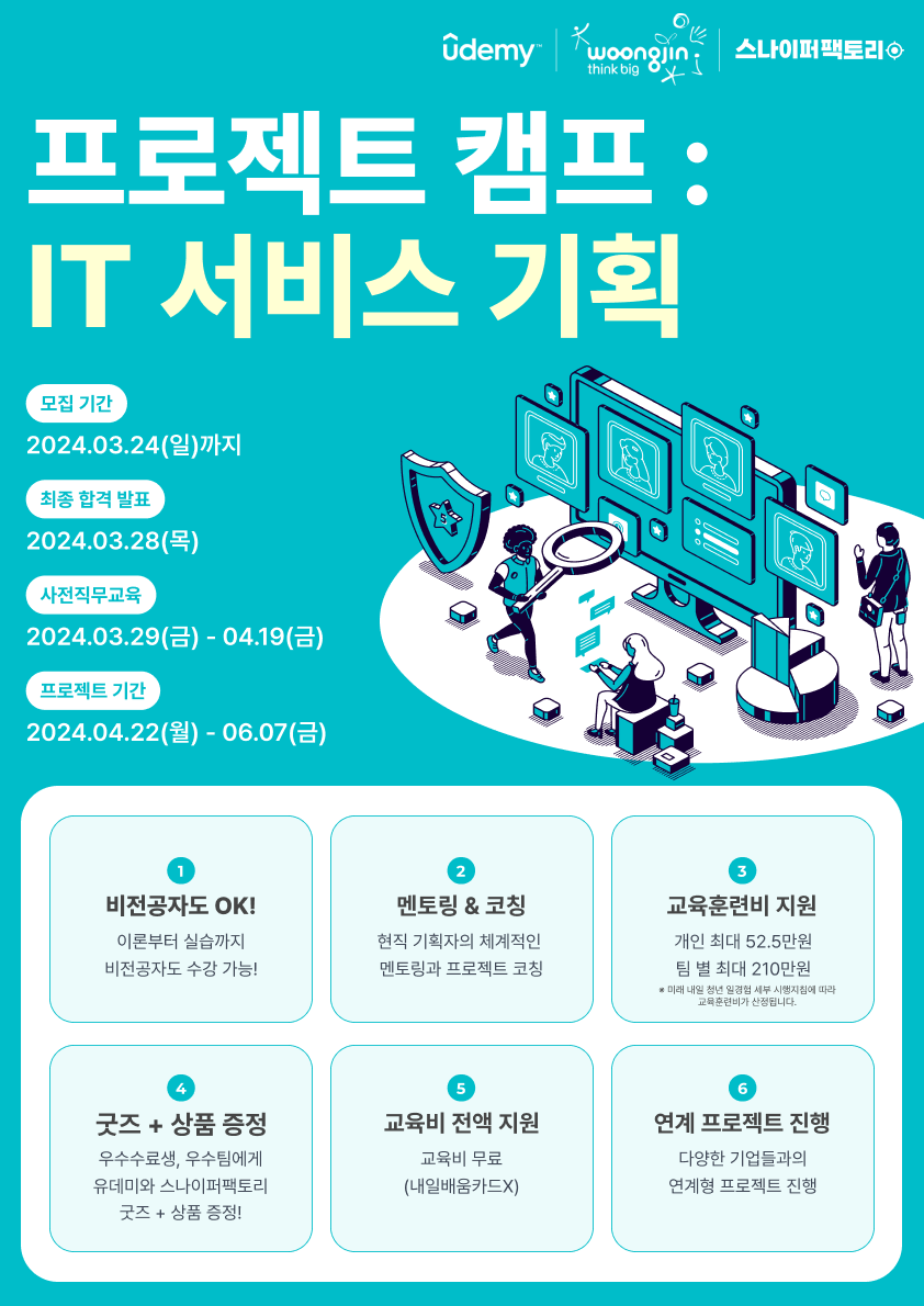 - 우수 프로젝트 팀은 유데미와 스나이퍼팩토리 굿즈제공