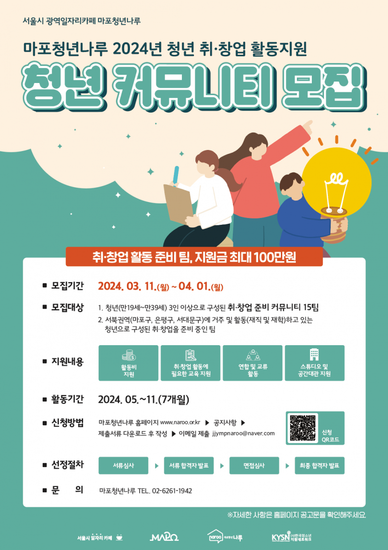 [마포청년나루 2024년 청년 취·창업 활동지원 '청년 커뮤니티 모집']