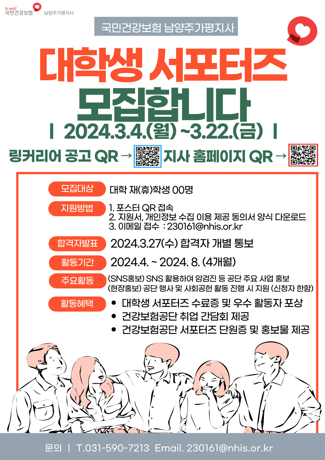[건강보험공단 남양주가평지사 서포터즈 공고 세부내용]