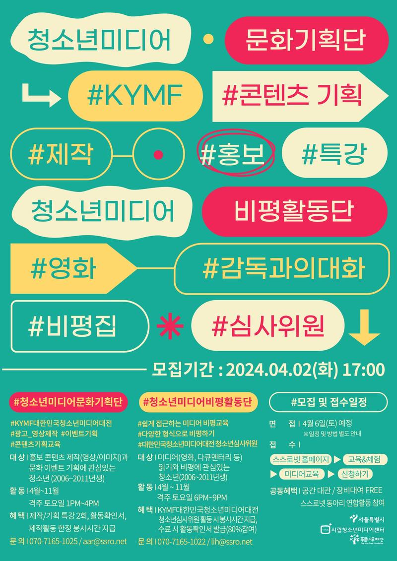 2024 <청소년미디어문화기획단>, <청소년미디어비평활동단> 참여 청소년 모집