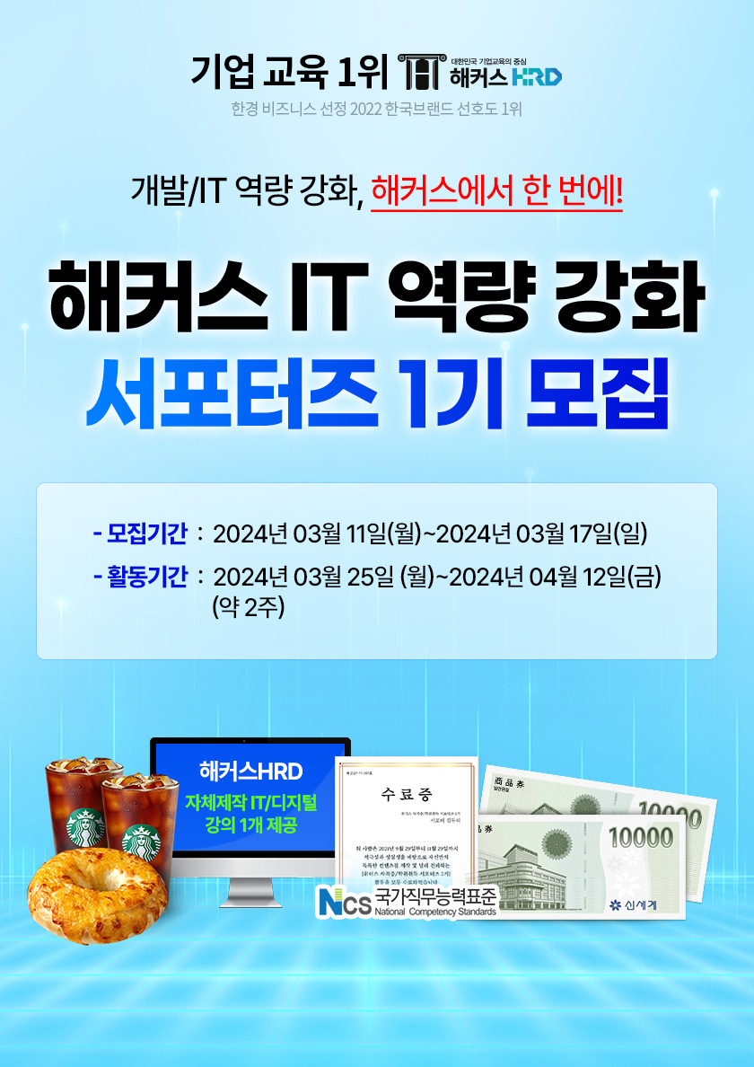★해커스 IT 역량 강화 서포터즈 1기★를 모집합니다.