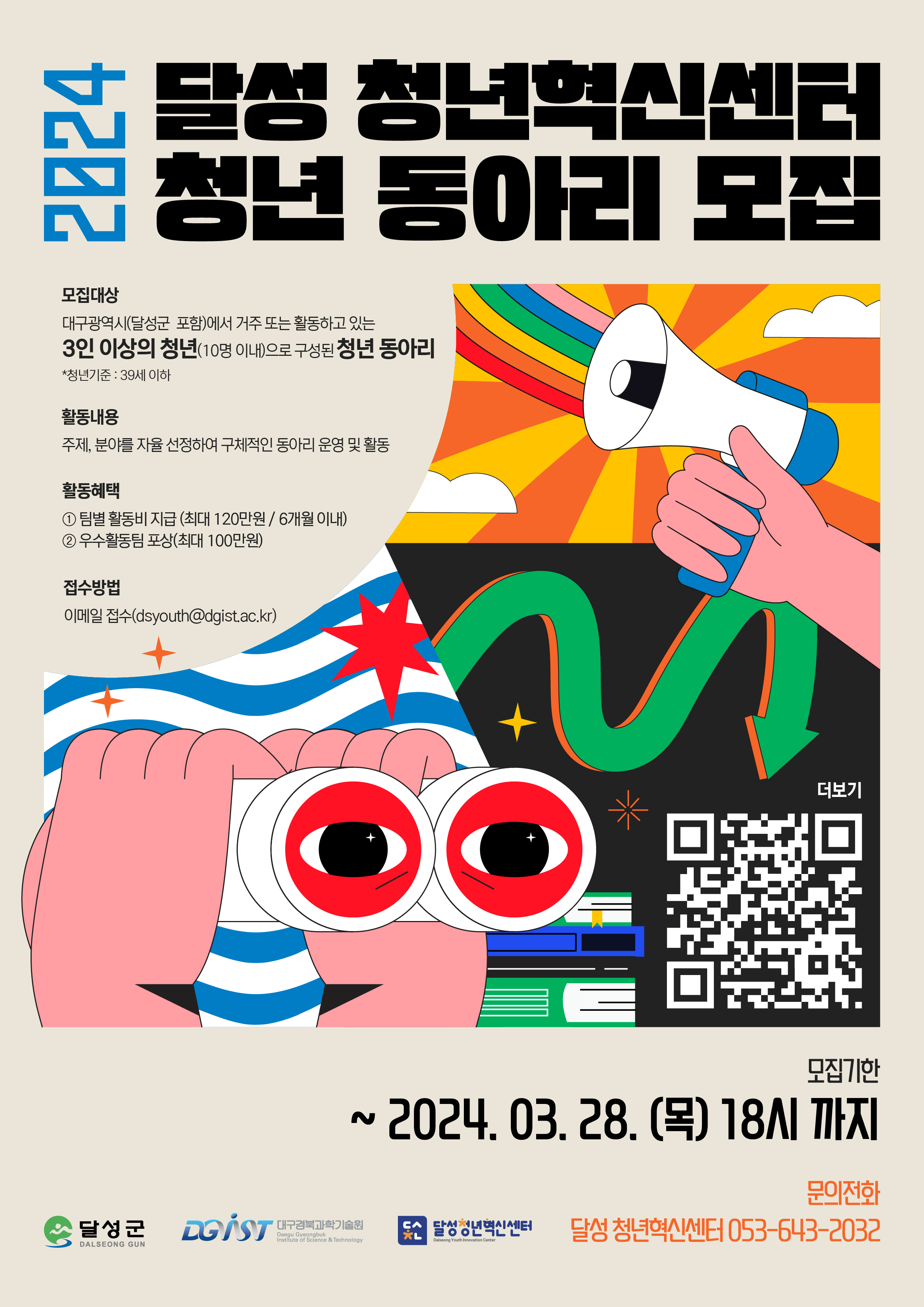 달성 청년혁신센터 (053-643-2032 / dsyouth@dgist.ac.kr)
