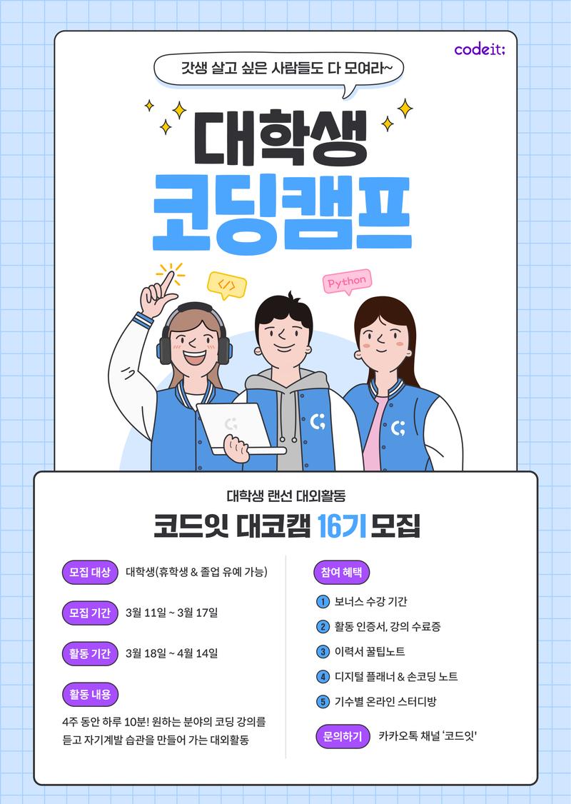 대학생 코딩 대외활동! 대학생 코딩 캠프 대코캠 16기 모집