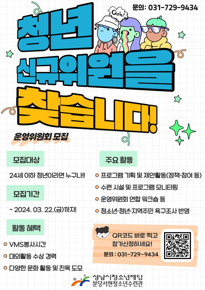 분당서현청소년수련관 활동사업팀 031-729-9434